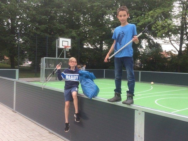 Pedro und Piet sammeln in den Pausen Müll, denn sie möchten, dass die Spiel- und Sportanlagen sauber und gut bespielbar bleiben. In der Coronazeit findet kein Sportunterricht und nur eingeschränkter Vereinssport statt, und daher treffen sich jetzt viele Kinder und Jugendliche an der IGS Flötenteich zum freien Sporttreiben, Spielen und zum Fitnesstraining im Freien. Toll, dass so viele Menschen hier Sport treiben - leider sammelt sich oftmals viel Müll an und wird nicht immer in Mülleimern entsorgt.