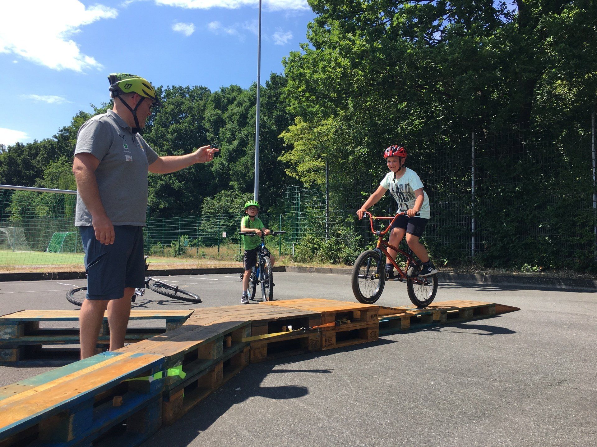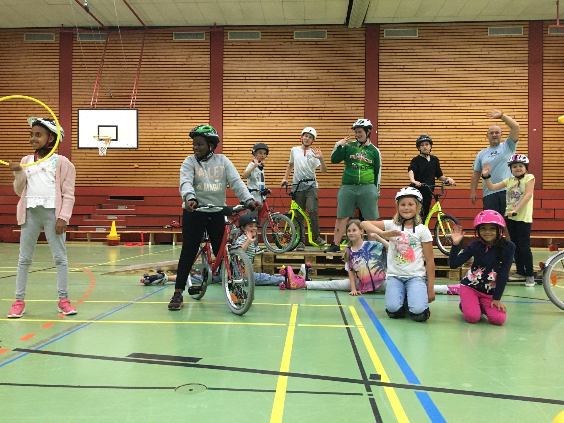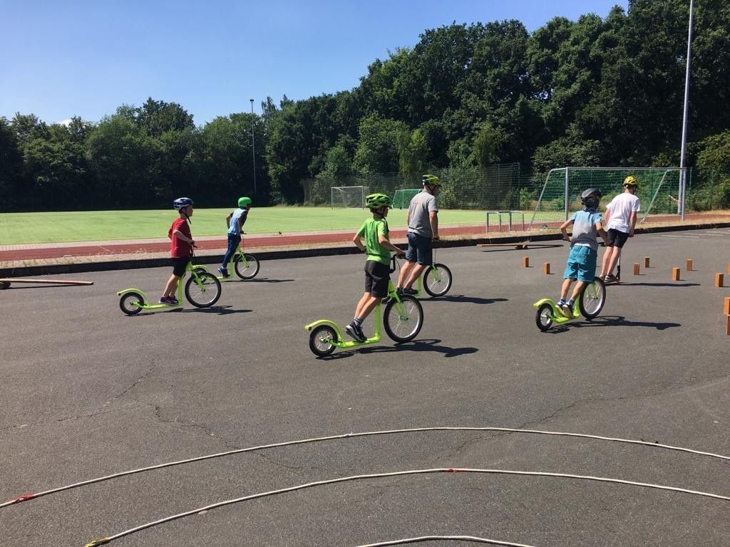 In der Coronazeit ist das Radfahren eine gesunde Alternative zum Busfahren. In dem Fahrradkurs kann das sichere Radfahren geübt werden und es gibt die Möglichkeit, viele verschiedene Tricks mit dem Fahrrad oder Scooter in einem Parkour auszuprobieren.
