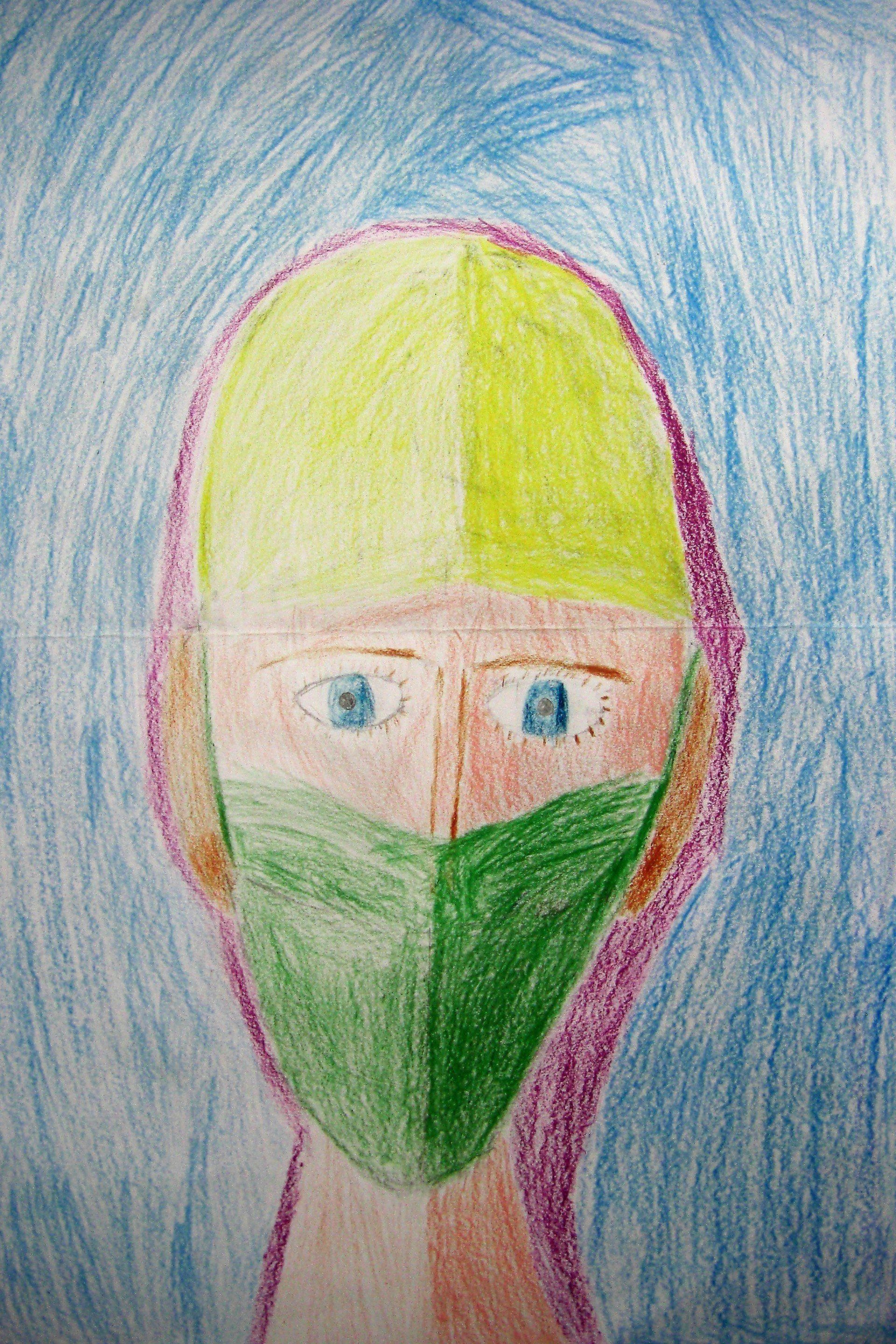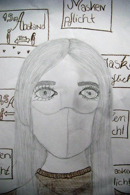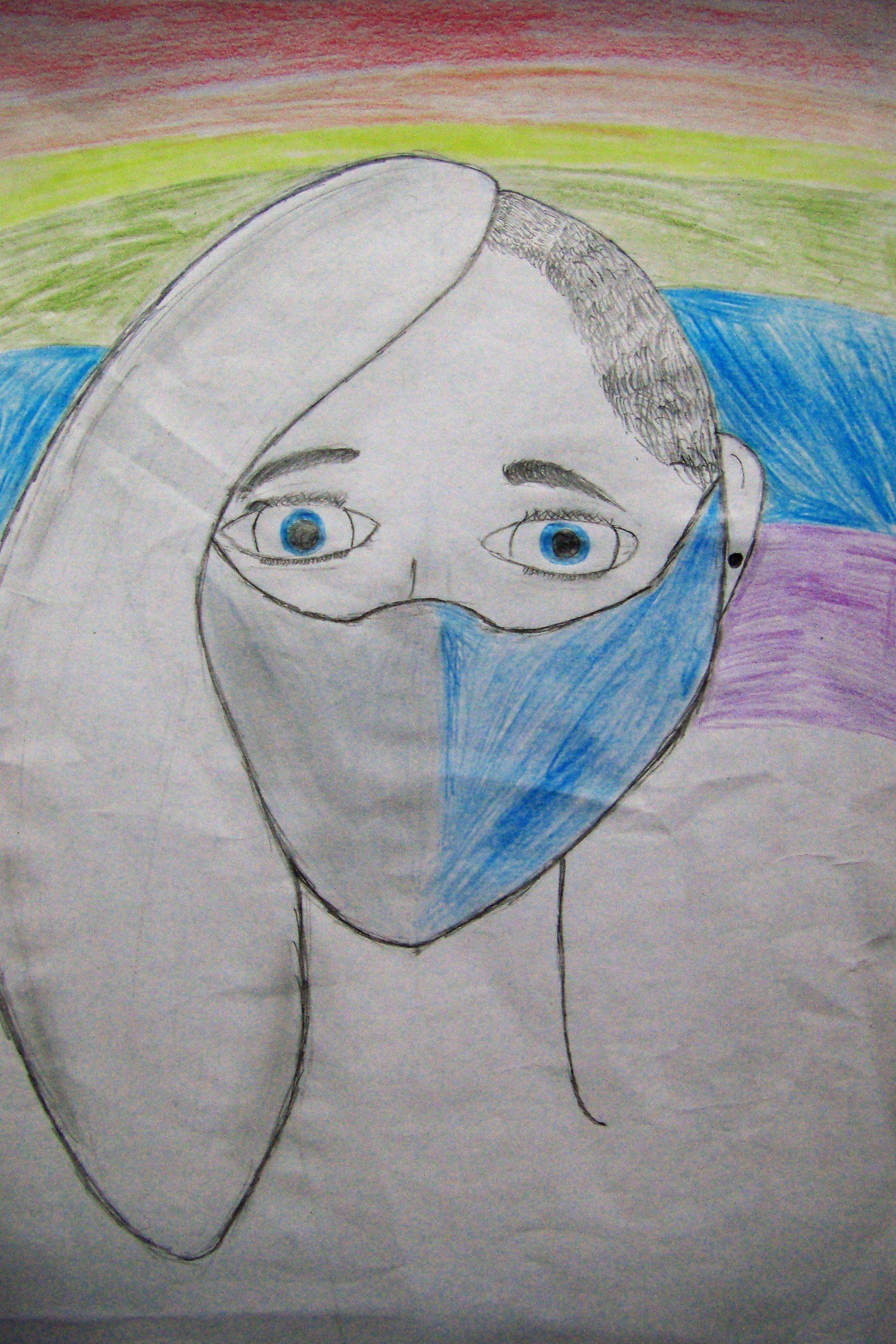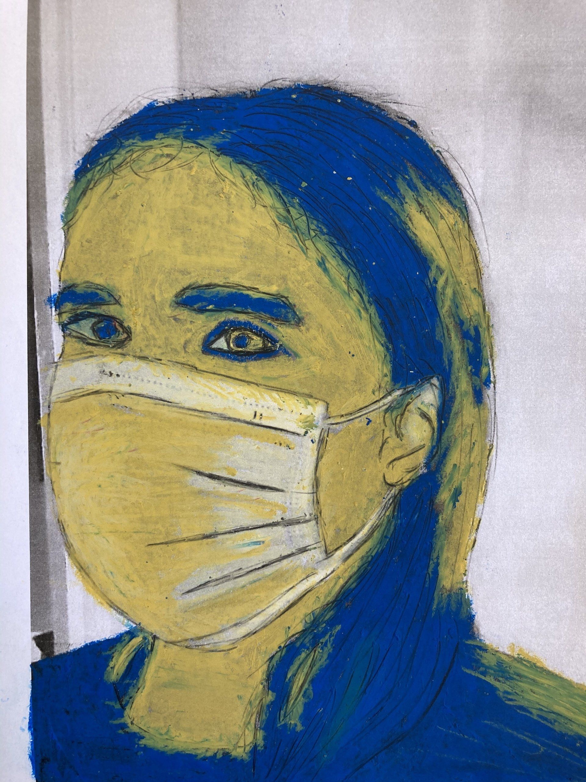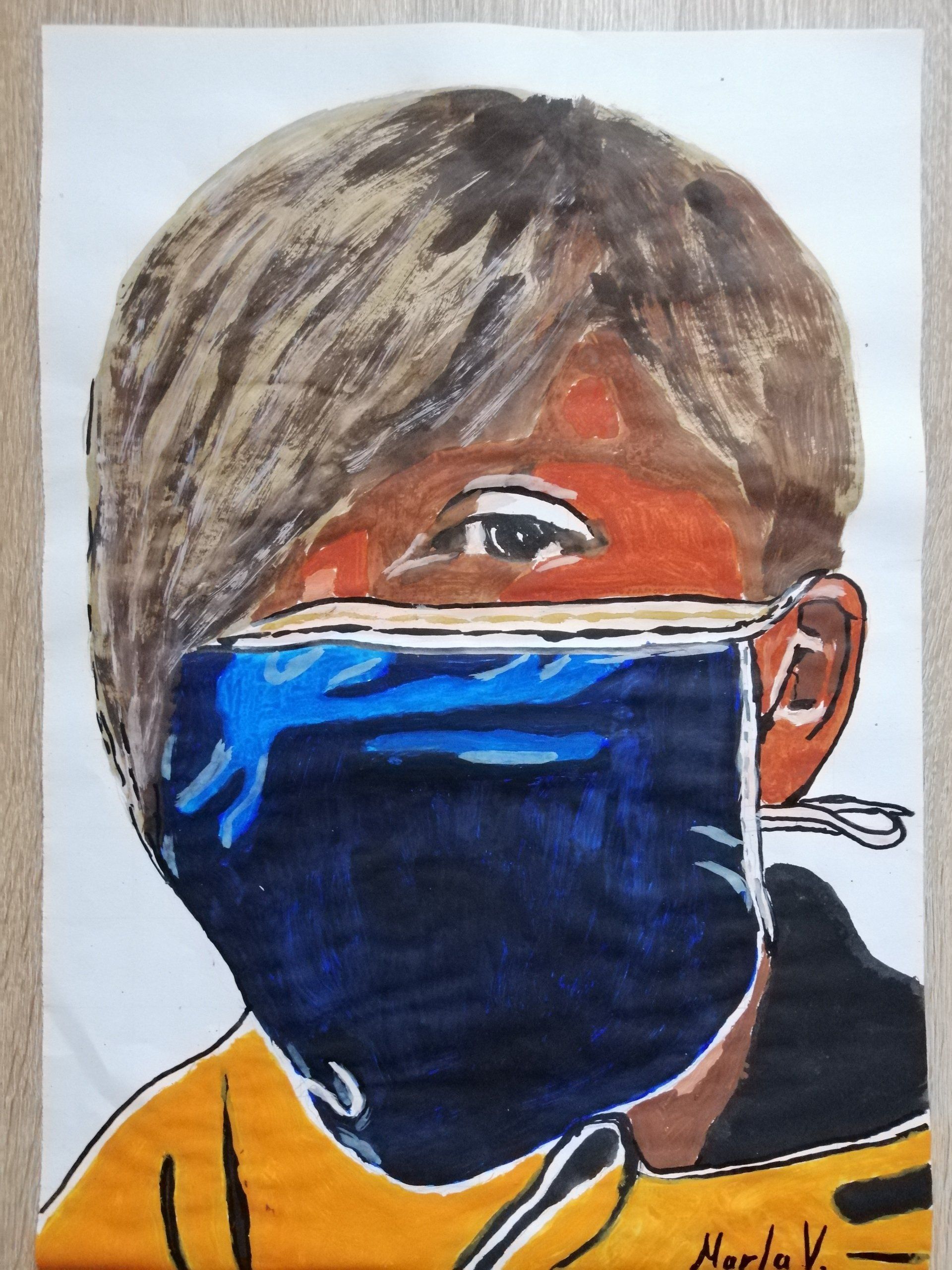 Daher haben wir ein Masken-Porträt-Projekt auf die Beine gestellt. Ideengeber für dieses Projekt war die Oldenburger Künstler*innengruppe Urban Sketchers, die Selbstporträts mit Stift und Pinsel auf ihrer Facebook-Seite veröffentlicht haben.