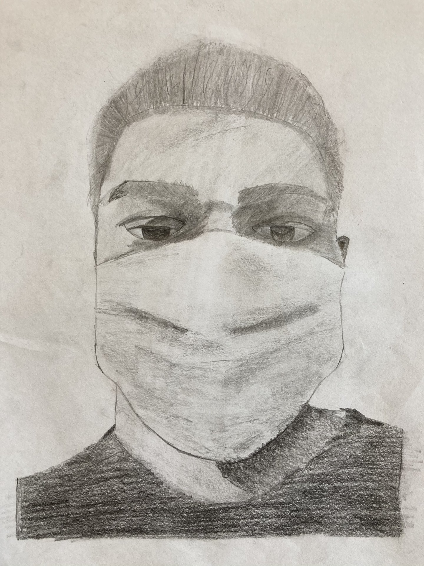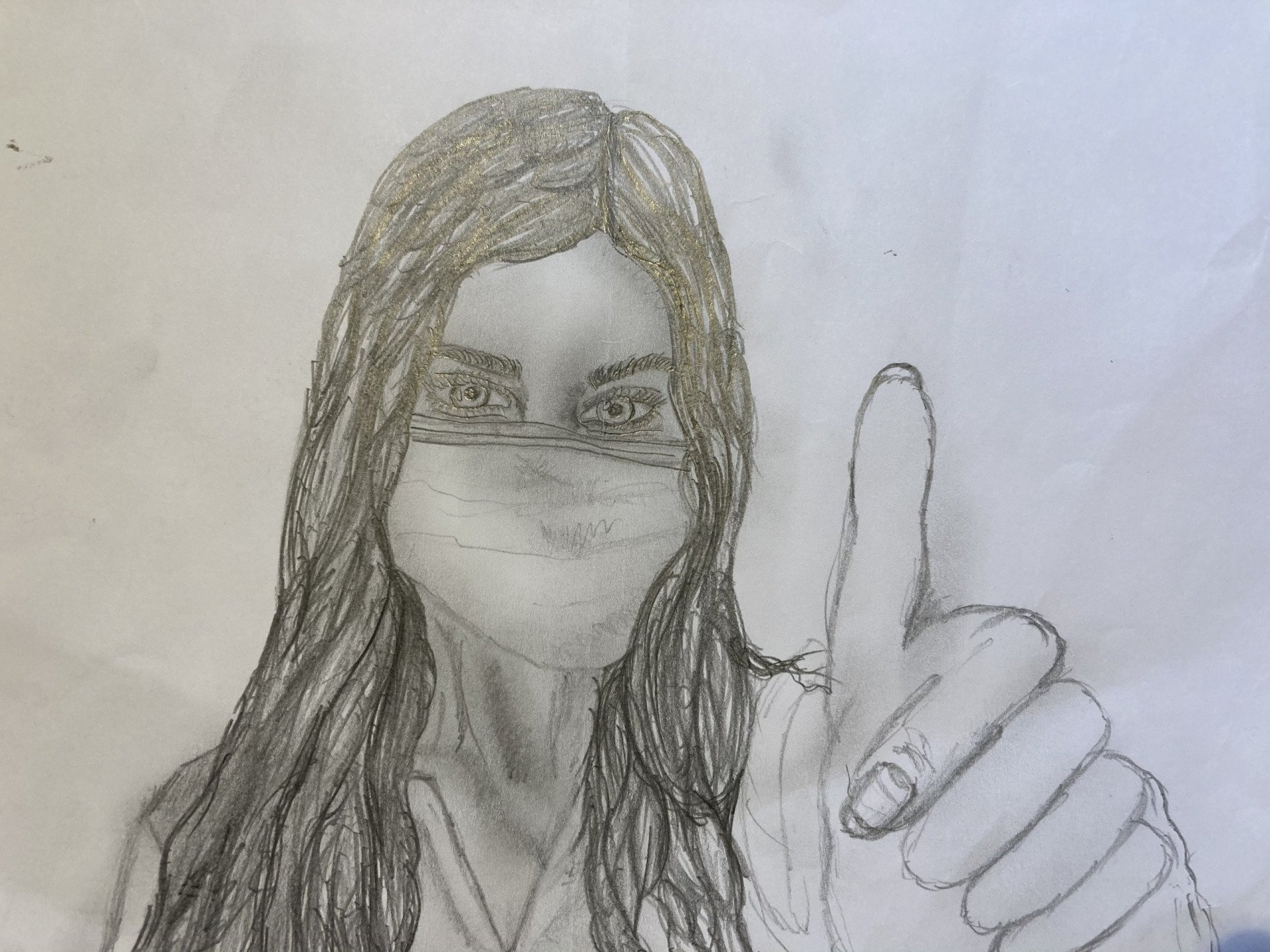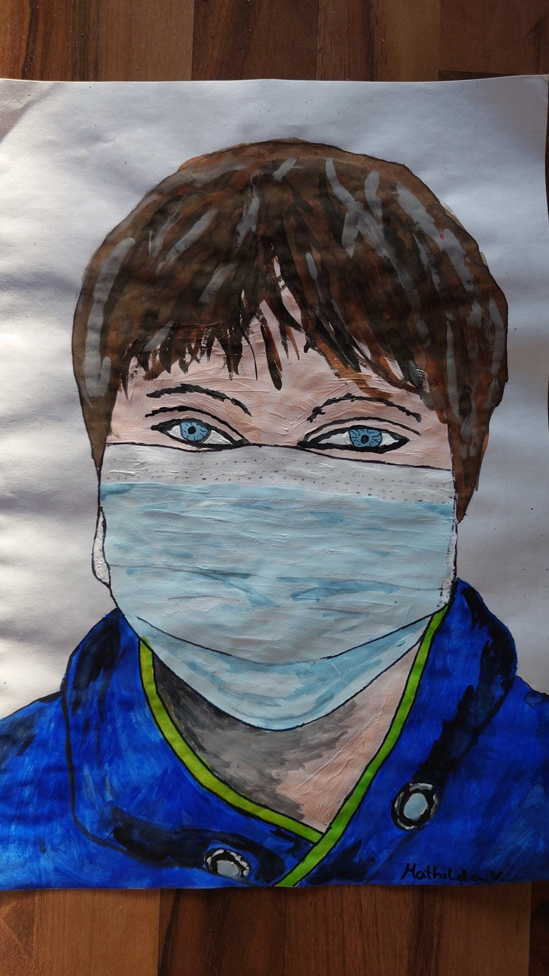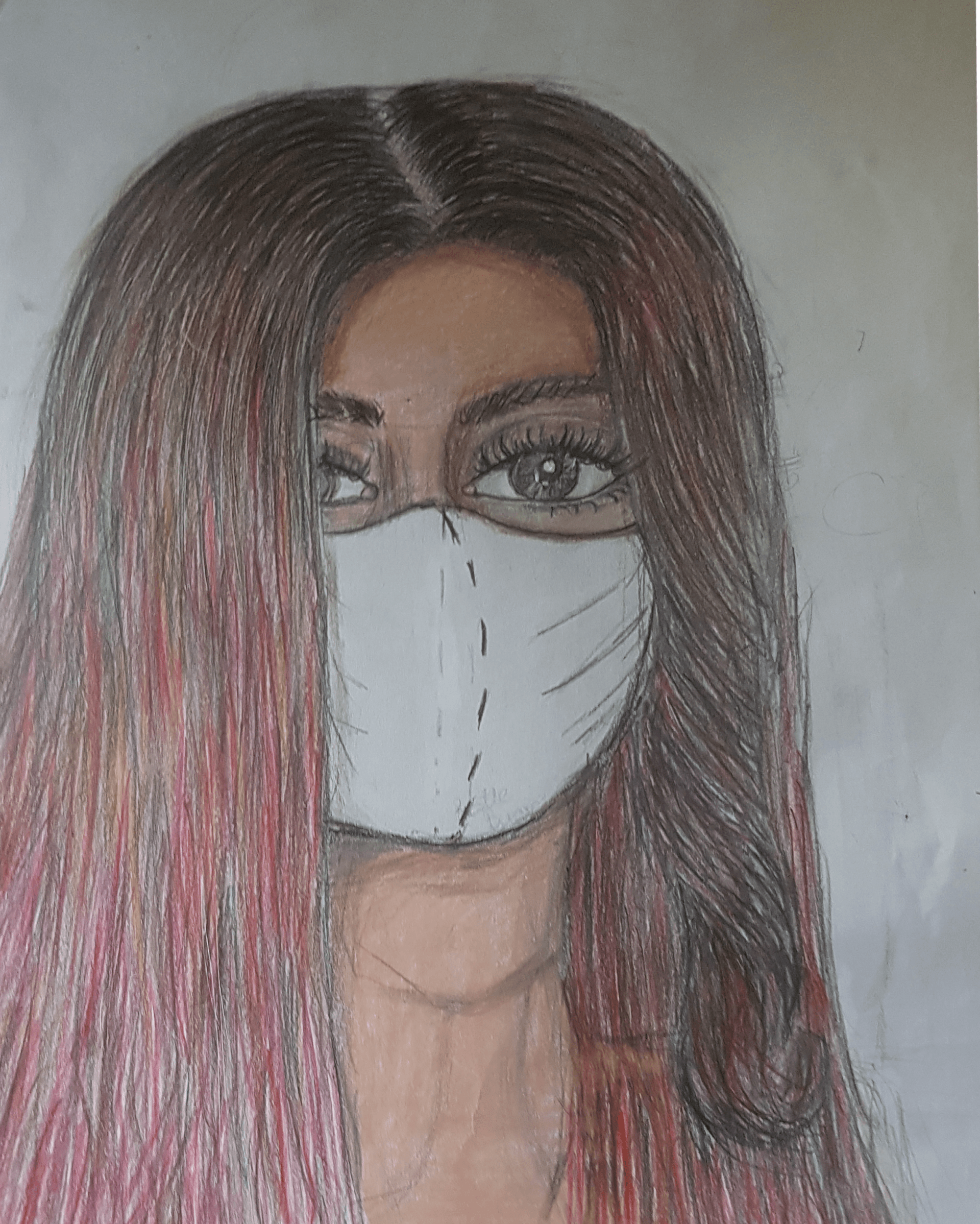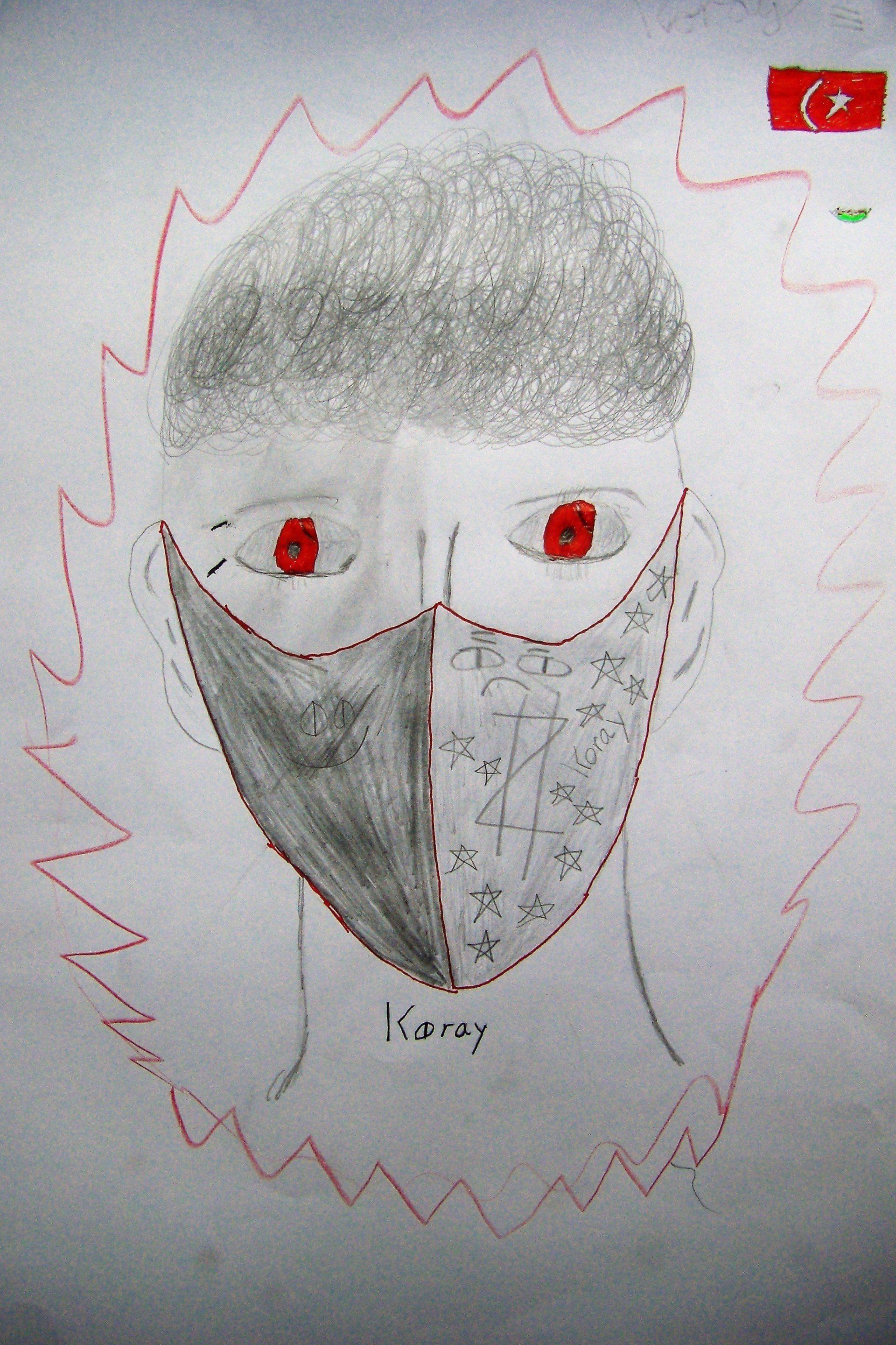 Daher haben wir ein Masken-Porträt-Projekt auf die Beine gestellt. Ideengeber für dieses Projekt war die Oldenburger Künstler*innengruppe Urban Sketchers, die Selbstporträts mit Stift und Pinsel auf ihrer Facebook-Seite veröffentlicht haben.